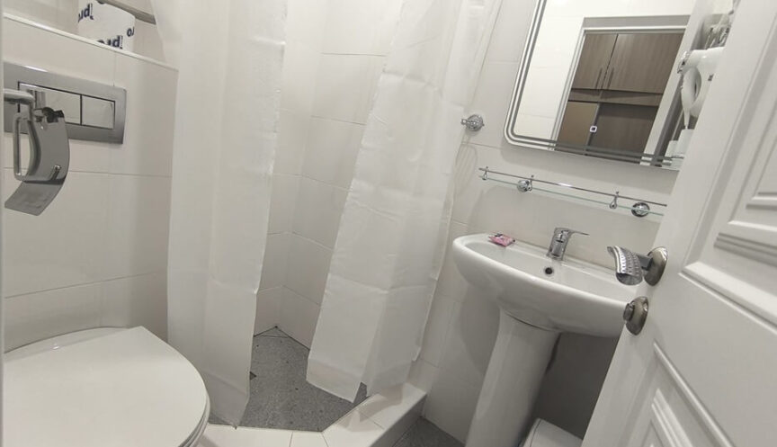 Уютный номер площадью 12 квадратных метров идеально подходит для одного человека. Здесь есть все для комфортного проживания: современный санузел с душем, туалетные принадлежности, полотенца и фен.